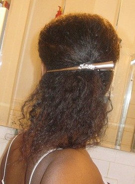 I probably should have added perm rods to the ends but instead I used magnetic rollers. I am not even sure why I did not use perm rods since I had some in the house at the time. It came out better than my last attempt, but I did still end up putting my hair half up and leaving it half down.