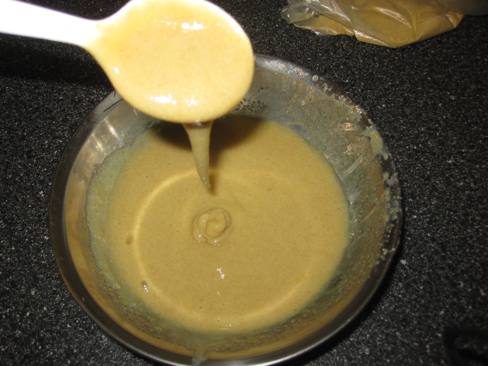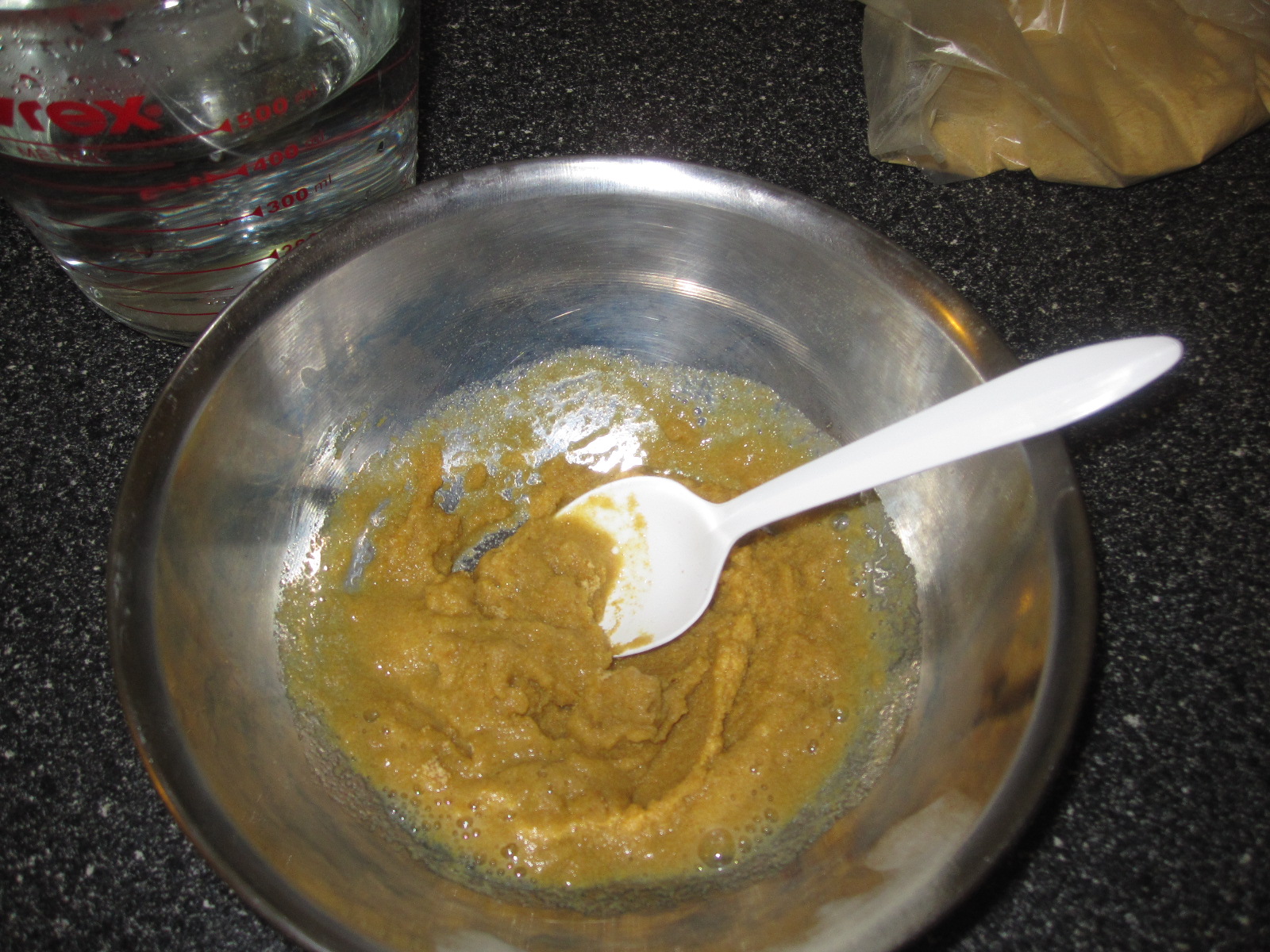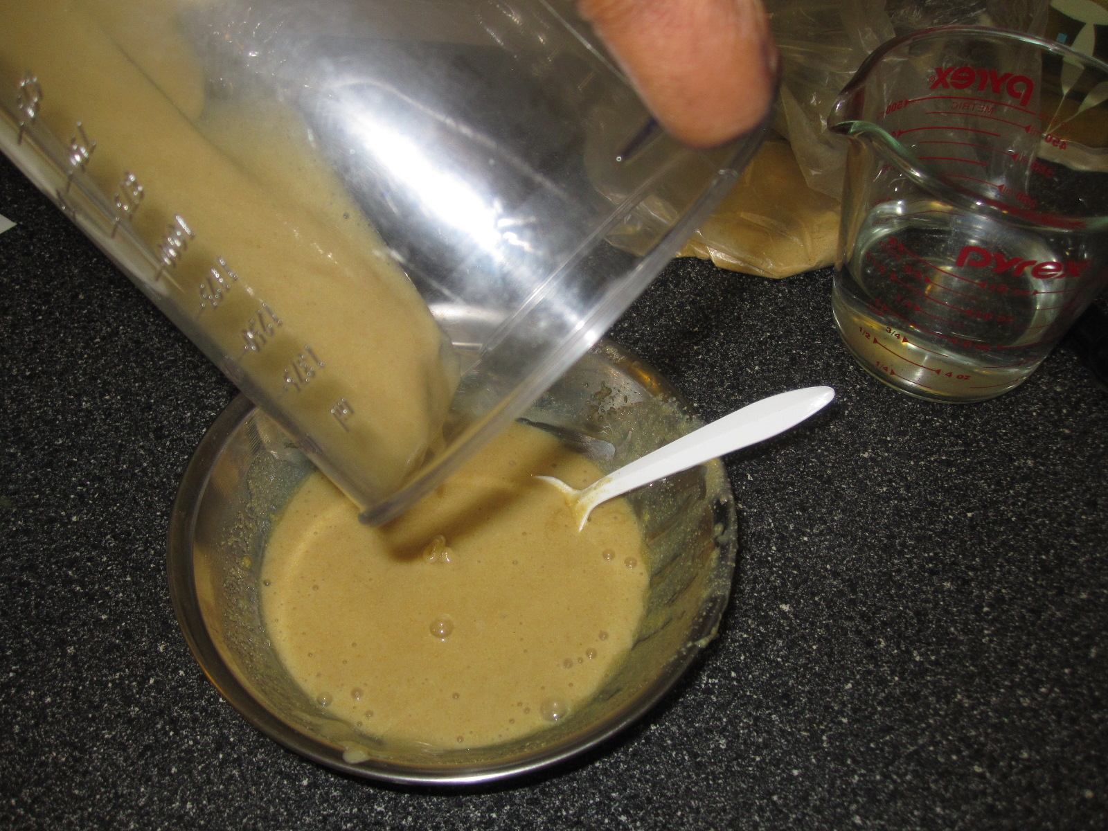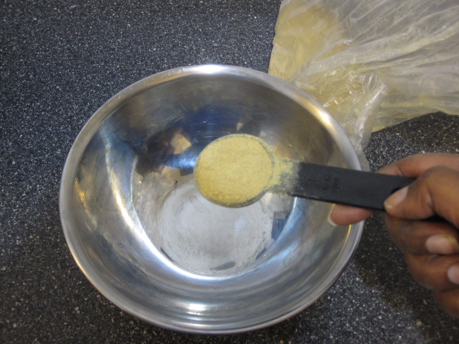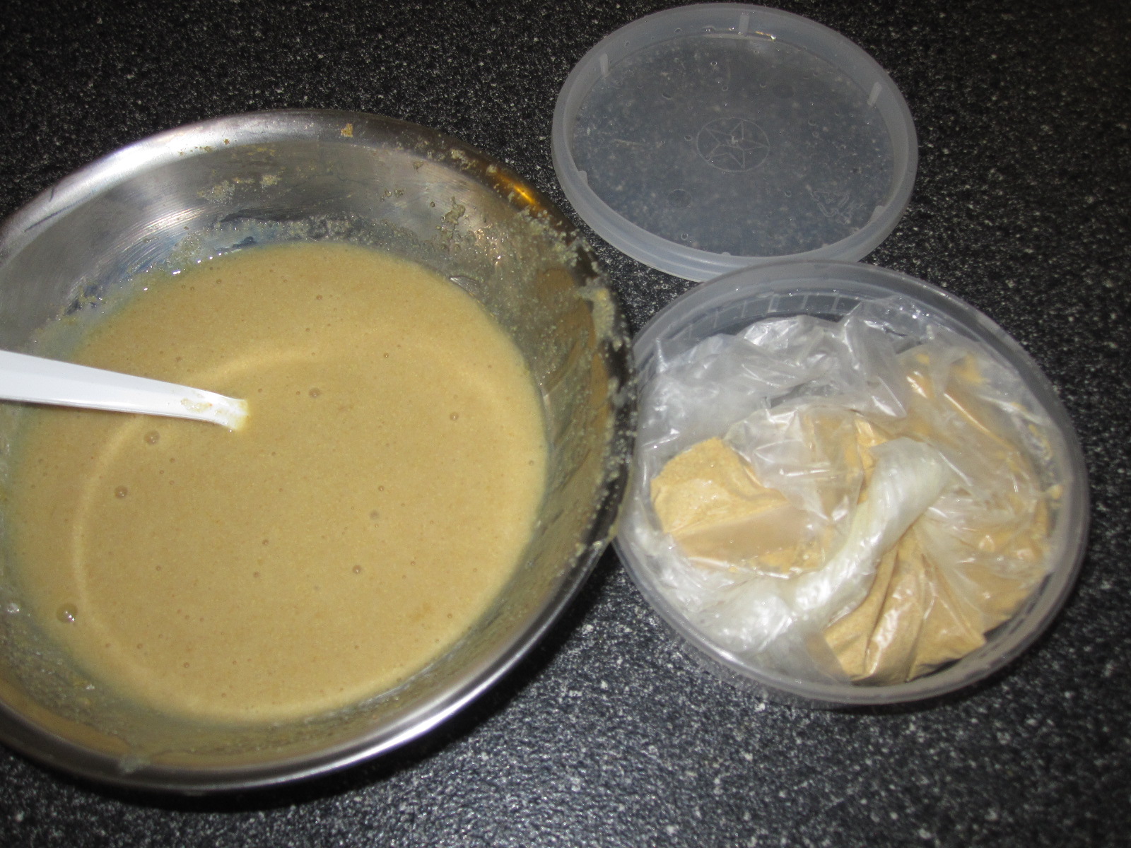 I recently learned about fenugreek (seeds or powder aka methi) to help with moisture and slip.  I also understand it’s great for dandruff and promotes hair growth. I found fenugreek powder at my local Indian store and bought 80 grams for $1.  I came home and whipped up a mixture of 2 tablespoons of fenugreek powder with 1 cup of boiling water and ran it through the blender to make the paste smooth.  It was sort of like pancake batter once blended.  I refrigerated it overnight since the smell was not something I wanted to deal with on a day when I had plans.  I stored the leftover powder in the bag and inside a plastic container with a lid.