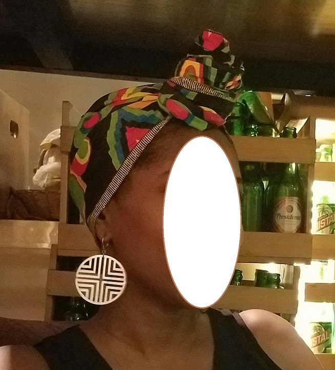 My sister has been wearing a headwrap off and on for a while.  I finally gave in and decided to give headwraps a try.  Granted, I cannot wear them to work but I took the opportunity to wear a few while on vacation.  I bought multiple headwraps and some fabric that I like to make into headwraps.  Some are a bit stiff while the silk once are a bit too light to give me cool shapes.  I ended up doing a top knot with each fabric since the headwrap styles I tried at home before leaving for vacation proved to be too difficult for me.  I didn’t really figure how to wear sunglasses with a headwrap, yet.  I’m sure there is a trick to it that I just don’t know yet.  For my edges, in some photos at least, I used Creme of Nature Argan Oil edge control.