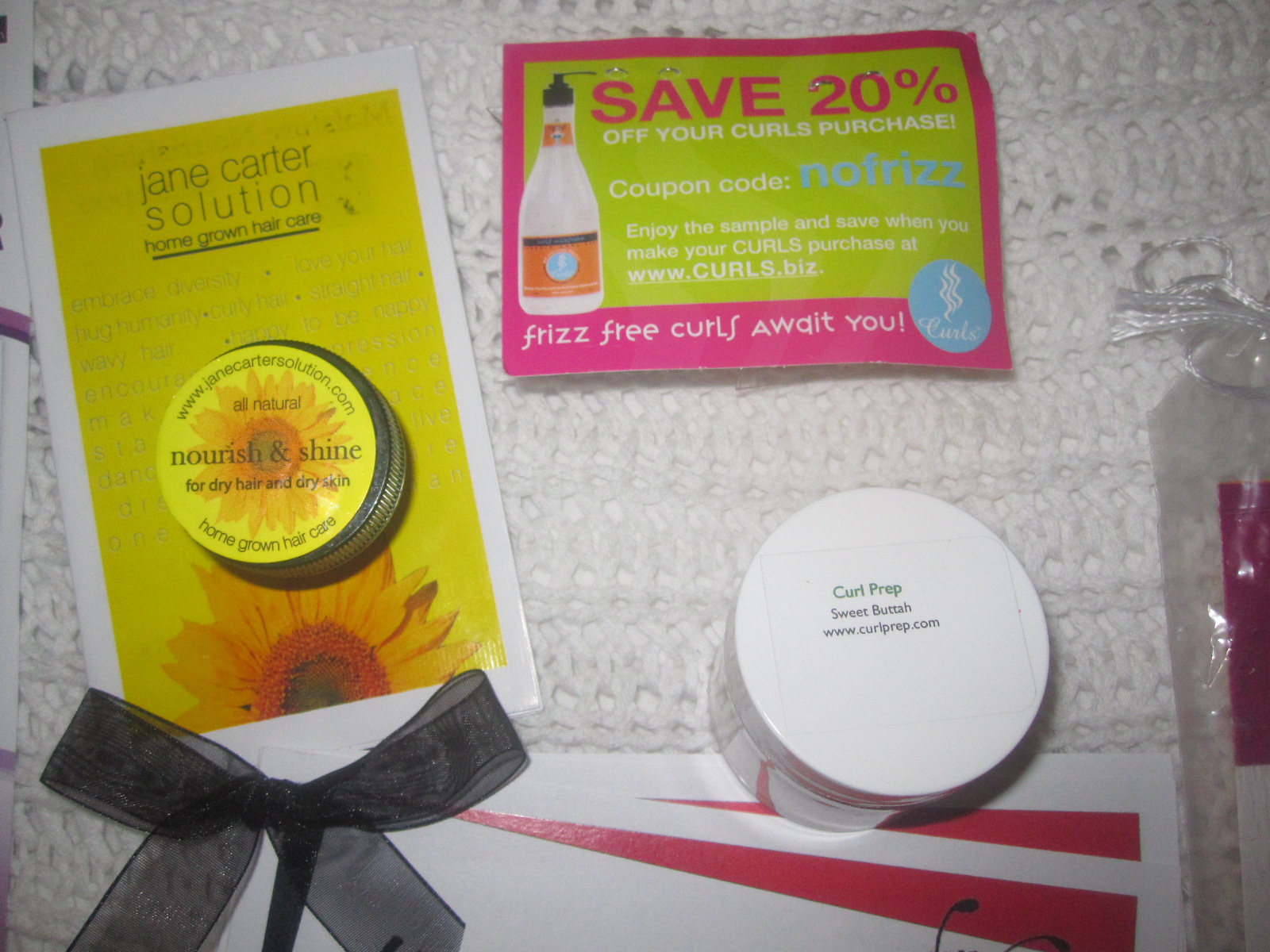The goodie bag aka “swag bag” included samples from Jane Carter, Curls, Honey B Creations,  CurlPrep, Jessicurl and others. Check out the photos.