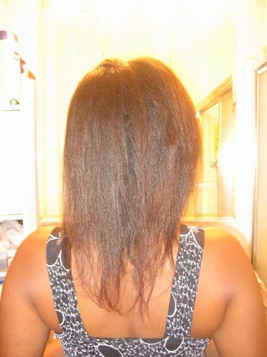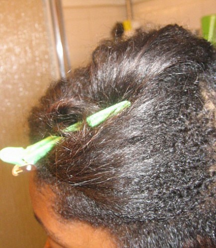 I did a deep condition with ORS and then a moisturizing deep condition with Aubrey Organics Honey Suckle Rose but I did not tie my hair down well enough to air dry so I had a fro the next morning…after using the last of my Sabino Moisture block before air drying. I rewashed but my hair was still not feeling all that great. So I washed again and used a ton of leave in (Herbal Essences Long Term Relationship). Then I decided to rollerset and flat iron the roots.